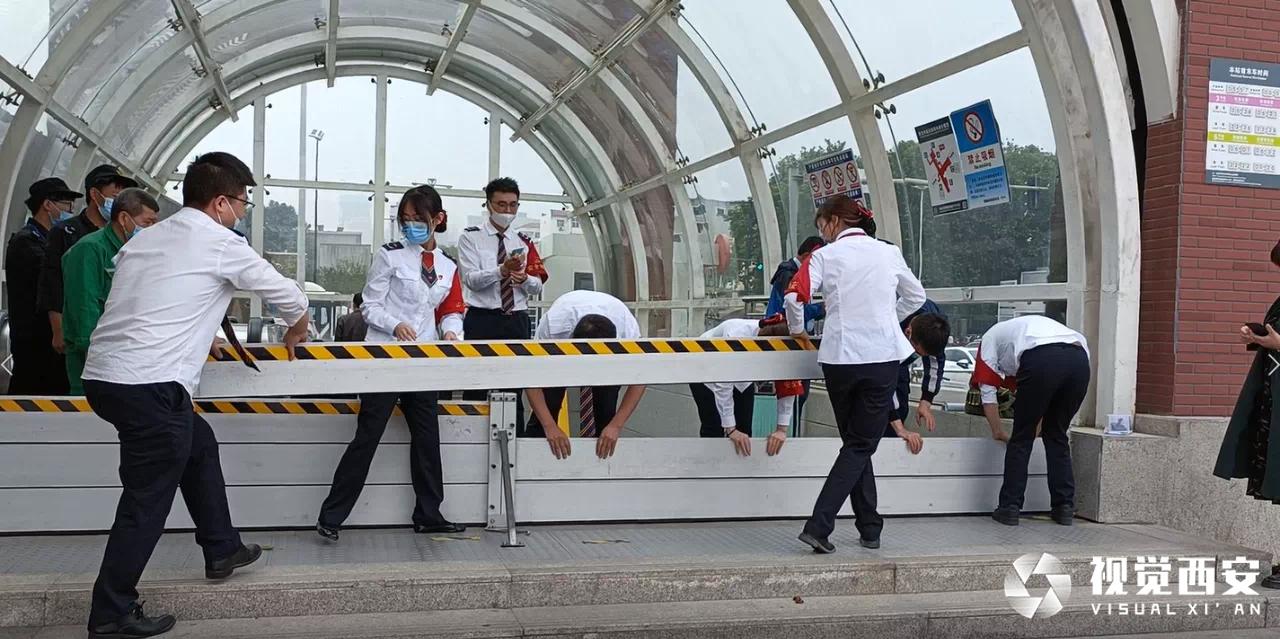 目前,已在地下车站各出入口划定 “水位警戒线”,当出入口外积水达到“水位警戒线”时,西安地铁将关闭受影响出入口,防止雨水倒灌进入车站;当车站不满足2个出入口运作条件或有雨水倒灌情形时,则关闭该车站;当外部积水大量涌入线路敞口段,或造成轨行区积水漫过轨面等影响列车运行的情况时,西安地铁将及时组织受影响区段或线路停运;当启动市级特大暴雨内涝应急响应时,则关闭地铁站点,全市地铁停运。