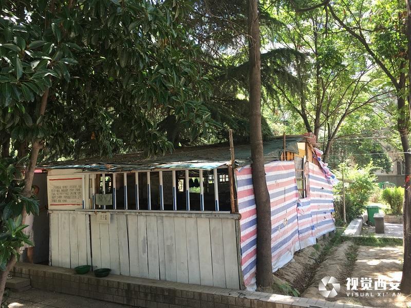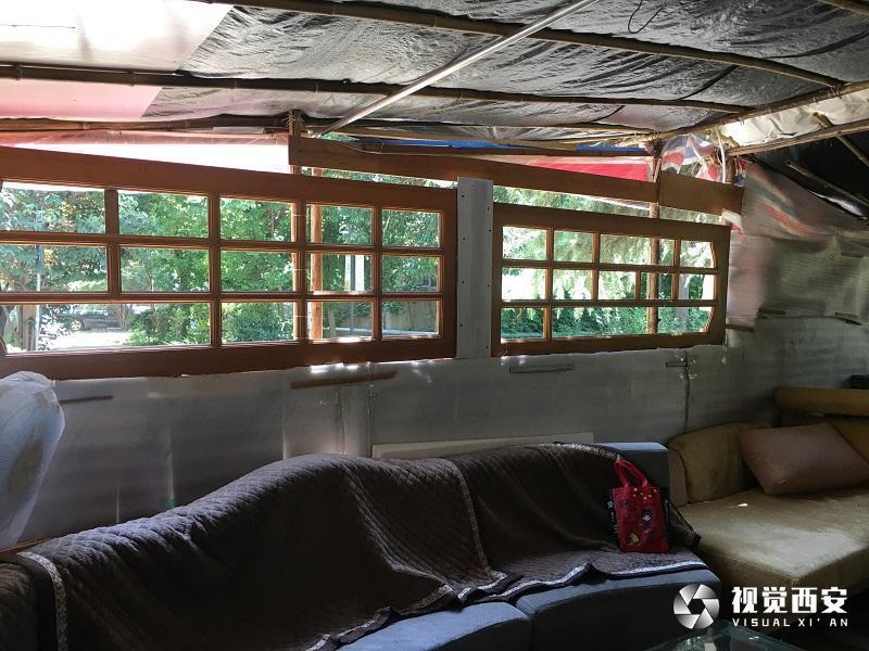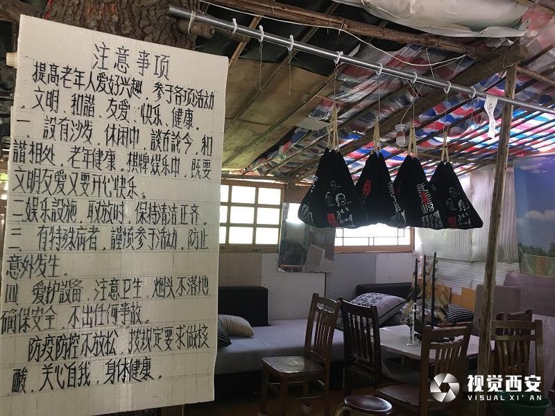 6月14日上午,记者来到西铁大明宫住宅小区(西区),小区“老年休闲活动站”是一间用废旧的木材搭建的简易棚,四周被红蓝相间的彩条布包裹着,废弃的防盗网和部分门框拼接成漏风的“窗户”。要不是门口挂了牌子,可能会被误认为是一处临时垃圾站。棚外,树荫下的桌子旁围满下棋的人,尽管蚊虫较多,老人们仍全身心地专注于眼前的娱乐。“能有这块‘活动根据地’也是来之不易,费尽了心思。”自筹资金修建“老年休闲活动站”的赵冠军老人介绍说,修建棚子大约花费5000多元,棚内外的沙发、桌椅、棋牌、烧水壶、电风扇等物品均为小区热心业主捐赠。目前,这间小小的棚子服务退休老人约有200名。