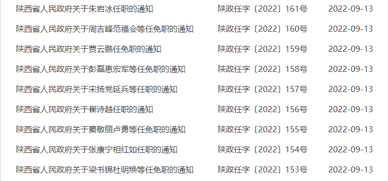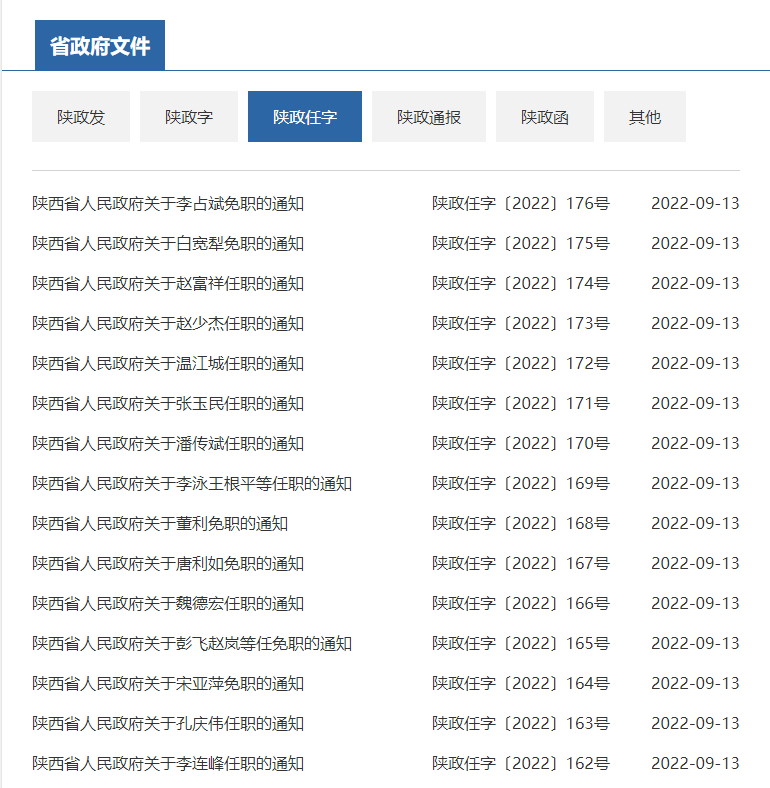 陕西省人民政府今日(9月13日)发布一批人事任免通知,具体内容如下:
