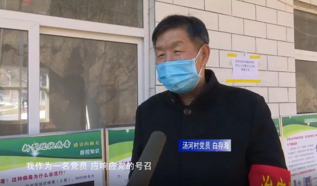 汤河村党员 白存海:我作为一名党员,应响应党的号召,积极的参加到这次防控工作中来,做好宣传防控工作,使每个人都清楚地知道如何做好自我防控,懂得防控就是(我的)责任。