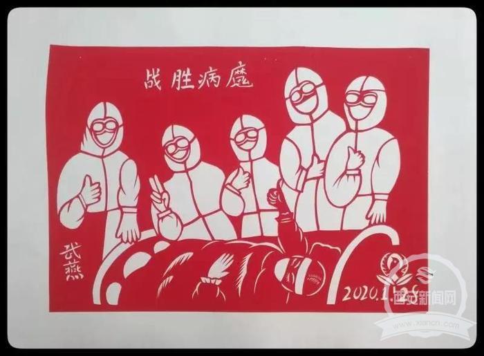 武燕说,疫情蔓延形势严峻,在居家防护的同时,她想尽一份绵薄之力,便决定创作有关疫情的一些剪纸作品,从正月初三开始,至今共剪出八幅42cm×30cm的剪纸作品,宣传引导大家科学防疫的同时,记录灾难,警醒后人,祈福平安。